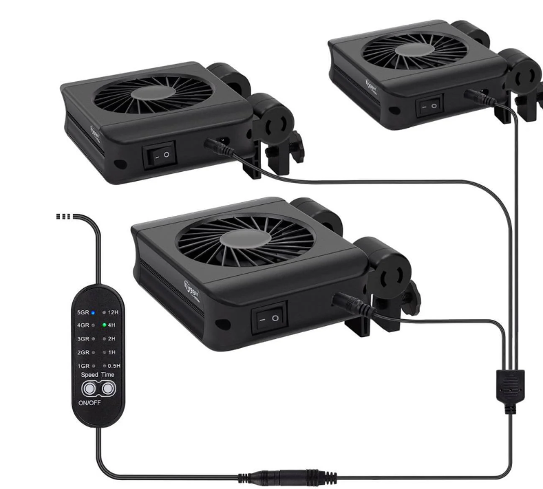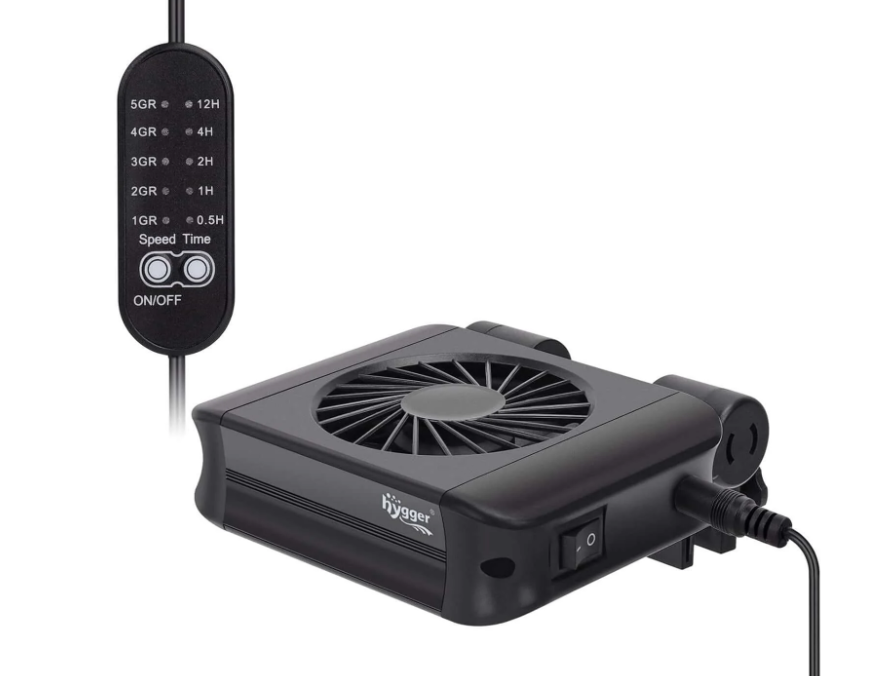hygger aquarium chiller is a quiet fish tank cooling fan with a 7-wing fan wheel that pushes large air volume at the outlet, it works energy saving with low noise.