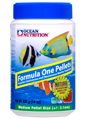 Ocean Nutrition Formula One Pellets are a protein-packed soft and moist slow-sinking food for all carnivorous (meat-eating) and omnivorous (meat and plant-eating) marine tropical fish. The pellets are formulated using fresh seafood and spirulina to provide daily nutrition with an appealing flavor fish cannot resist. The soft and moist nature of the pellets makes it easy for fish to digest them, so they produce less waste and your aquarium stays cleaner. Reward your fish with the food they deserve and feed them Ocean Nutrition!