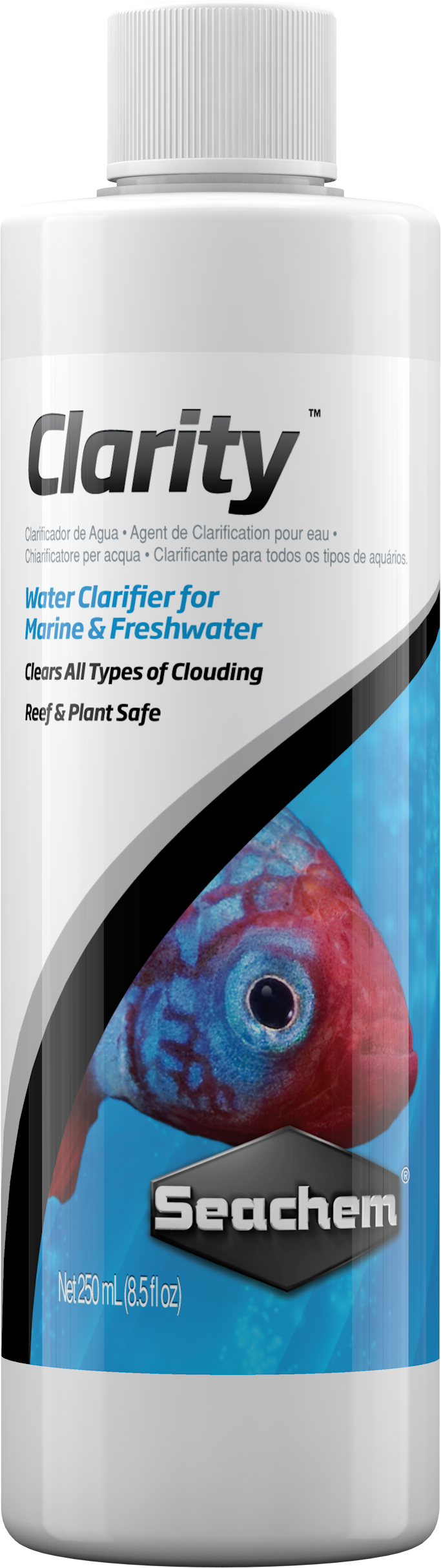 Many companies manufacture multiple products to clear up each type of cloudiness and each different environment (e.g. freshwater, marine, reef, etc.). Some companies have developed products that will clear most types of cloudiness, but their application requires two separate bottles of product. Clarity contains compounds that will clear all types of cloudiness in all environments.